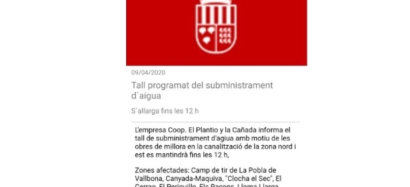 Ha servido de poco la reunión con Aguas del Plantio y La Cañada, COVAGUAS y el Ayuntamiento de La Pobla de Vallbona.