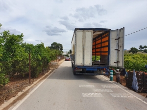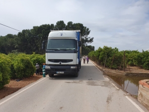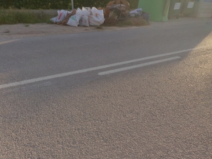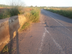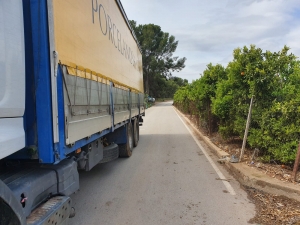 - Camiones ocupando mas de la mitad de la via, sin señalizar y sin regulacion del trafico. Estrechamiento vaqueria.