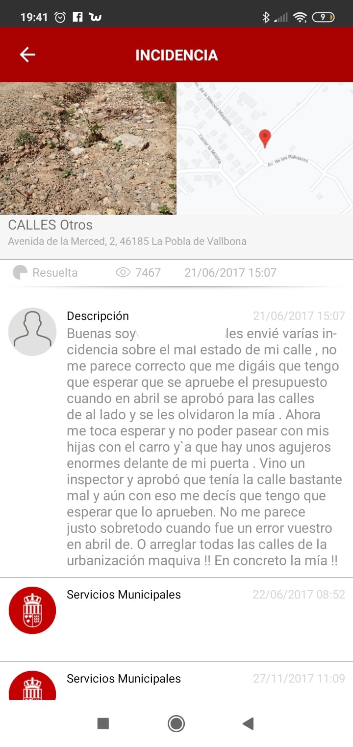 Os ponemos algunas de las incidencias presentadas desde 2017 y un video con fotos del día de ayer.